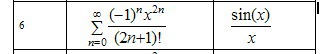 writeln(s:15:5, ' ', (sin(x) / x):15:5);