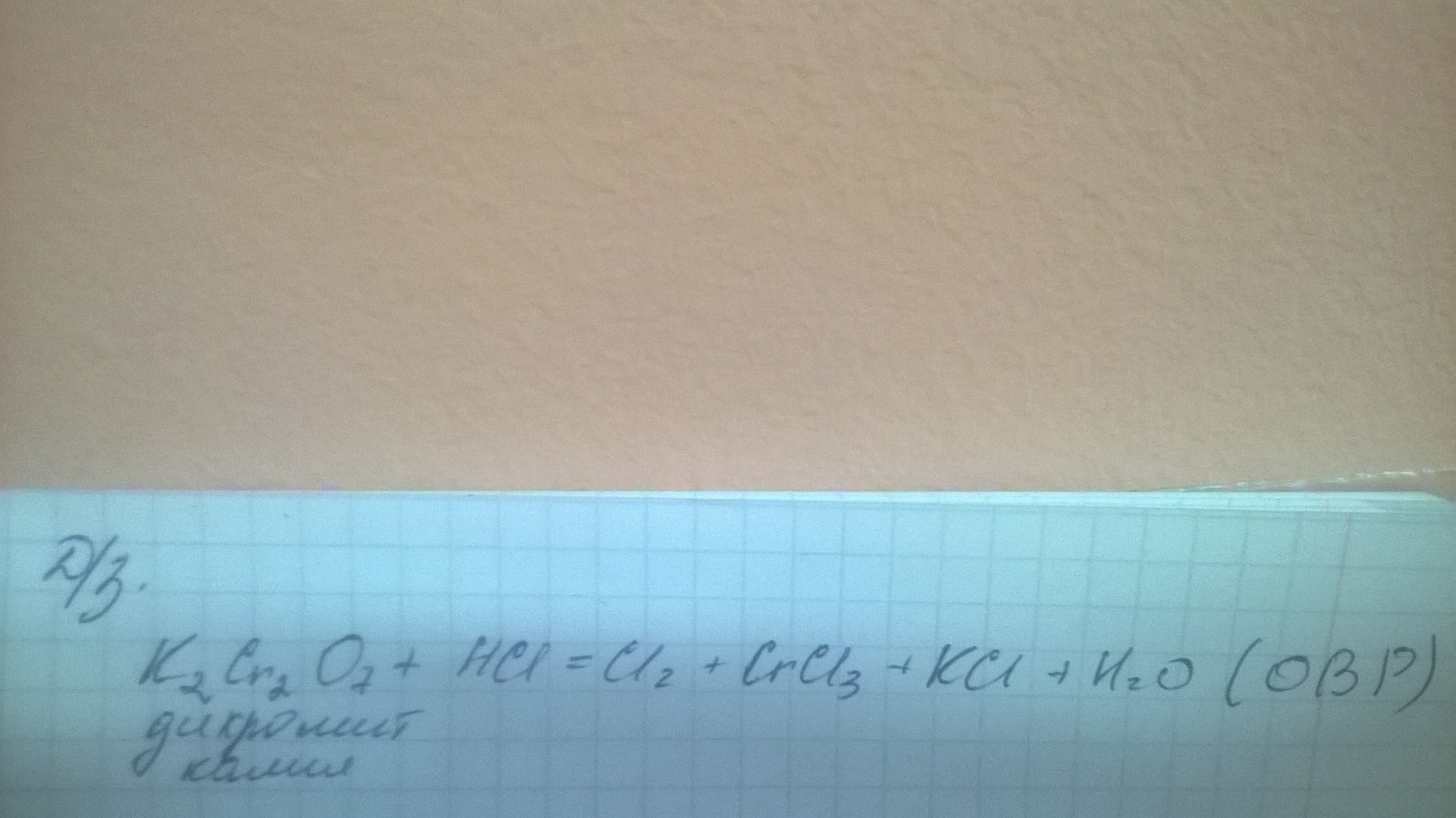 K₂Cr₂O₇ + 14HCI = 3CI₂ + 2CrCI₃ + 2KCI + 7H₂O