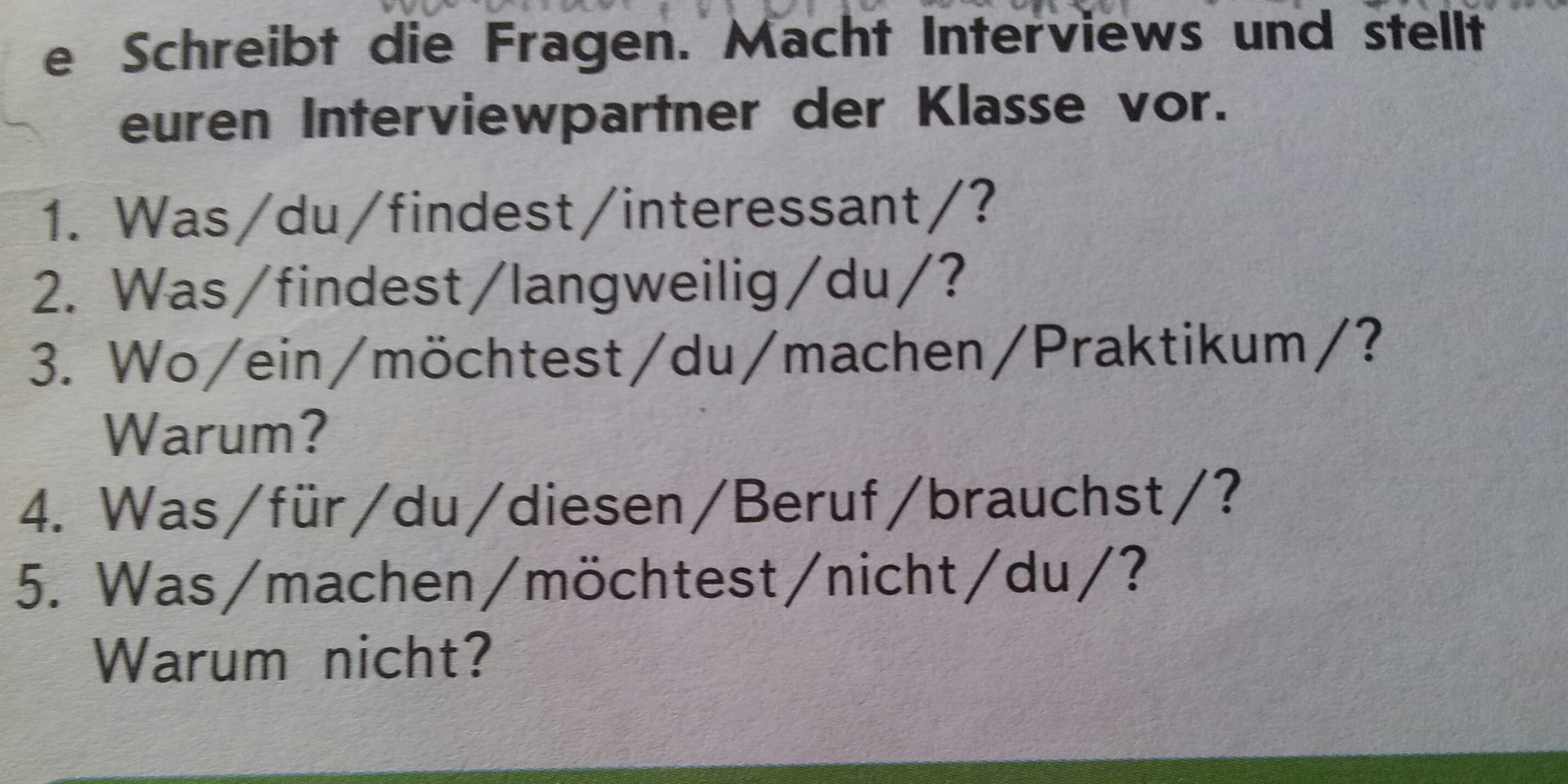 5. Was möchtest du nicht machen? Warum nicht?