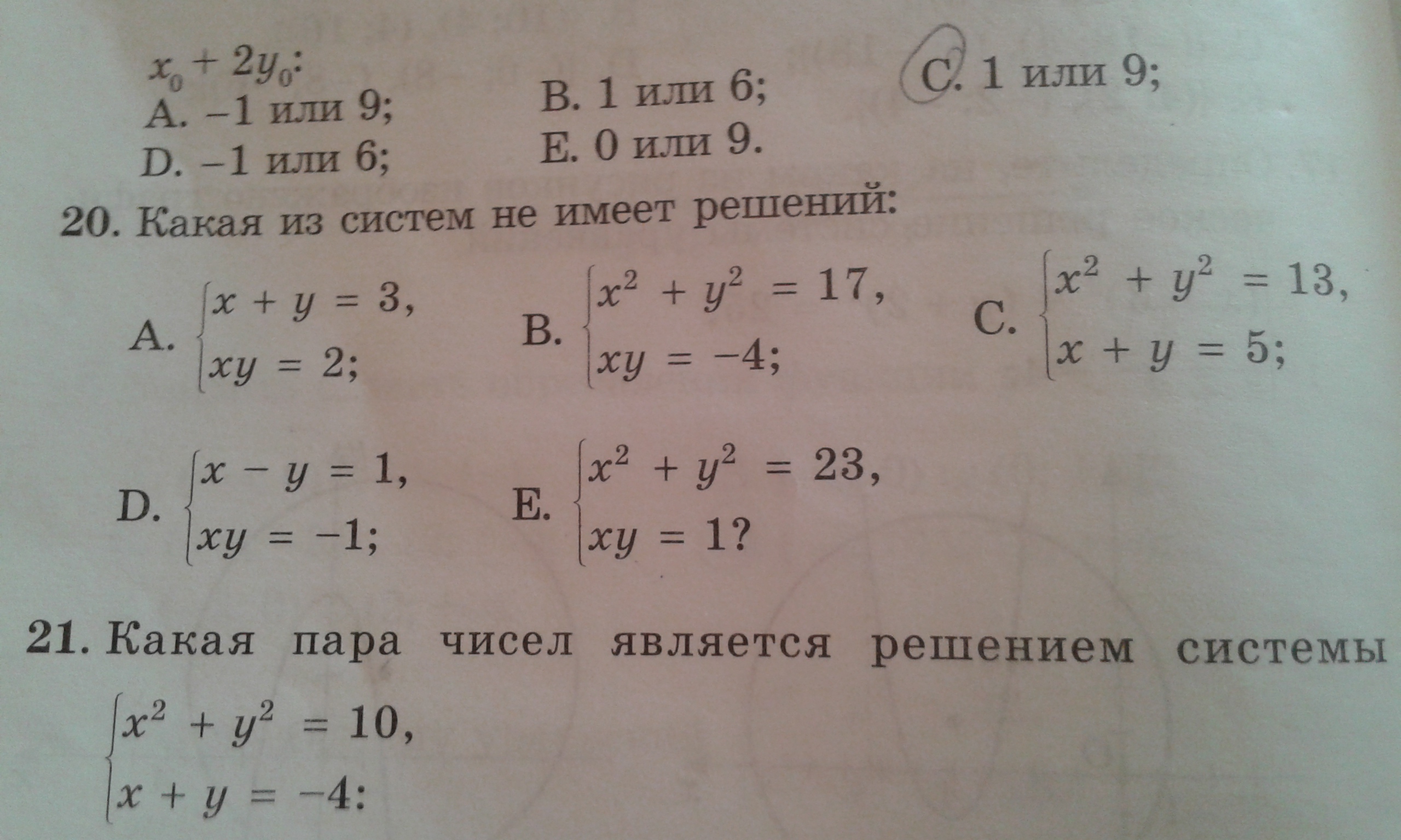 Решений не имеет система уравнений D