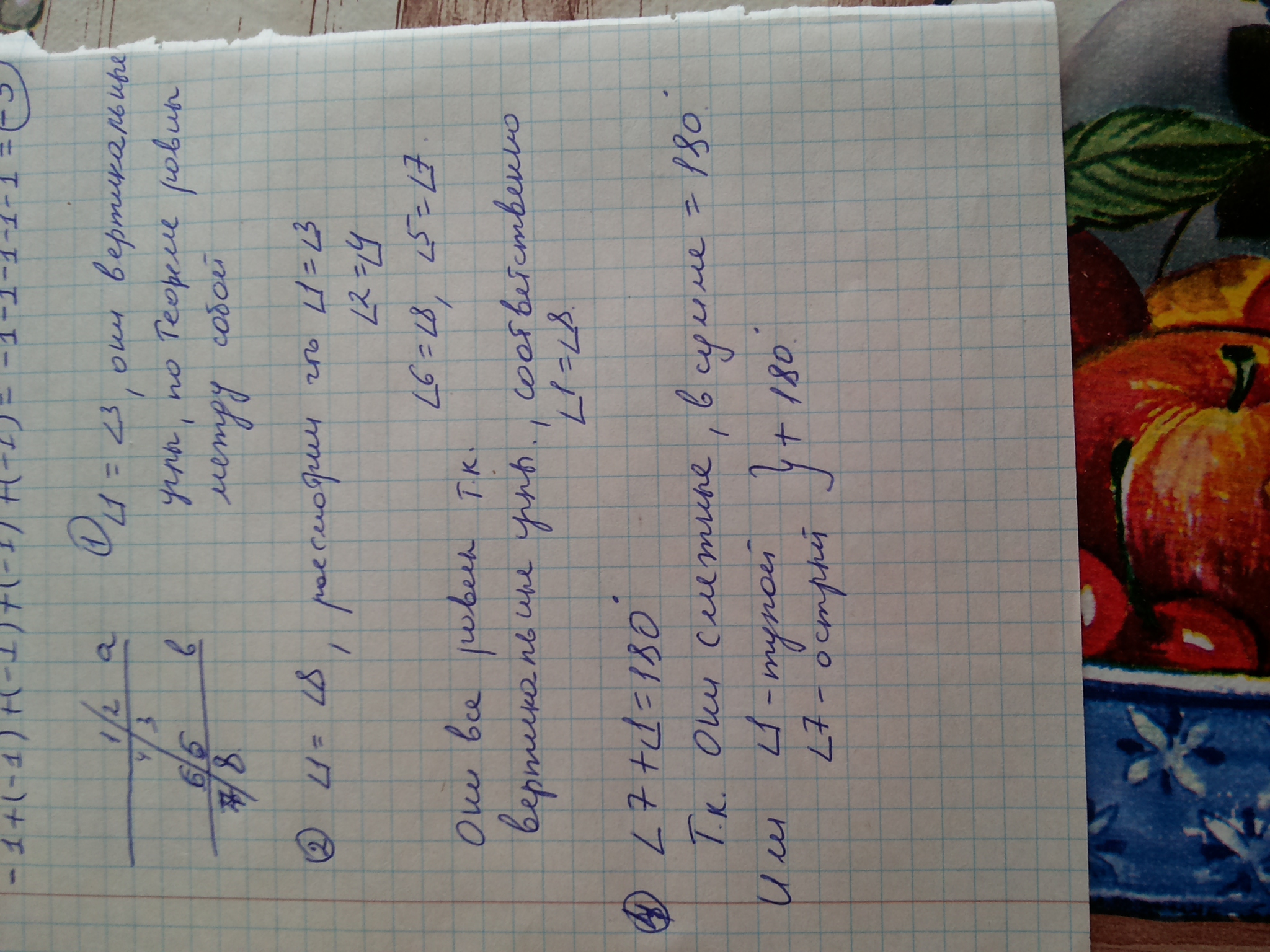 прямые a и b параллельны , а прямая c пересекает их. Относительно полученных углов при пересечении докажите ниже следующее 1)< 1=<3; 2) <1=<8; 3)<6=<7; <7+<1=180°