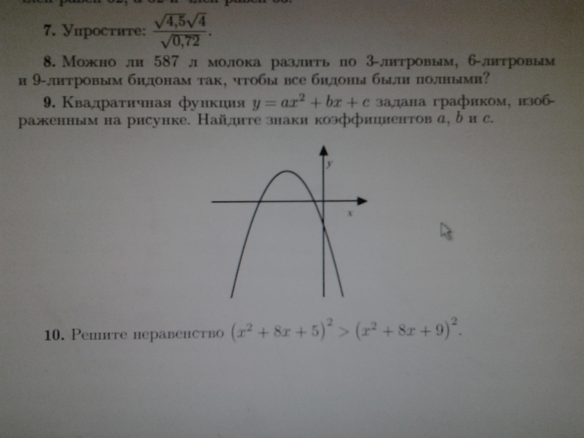 очевидно, что а < 0 (знак минус) ---ветви параболы направлены вниз