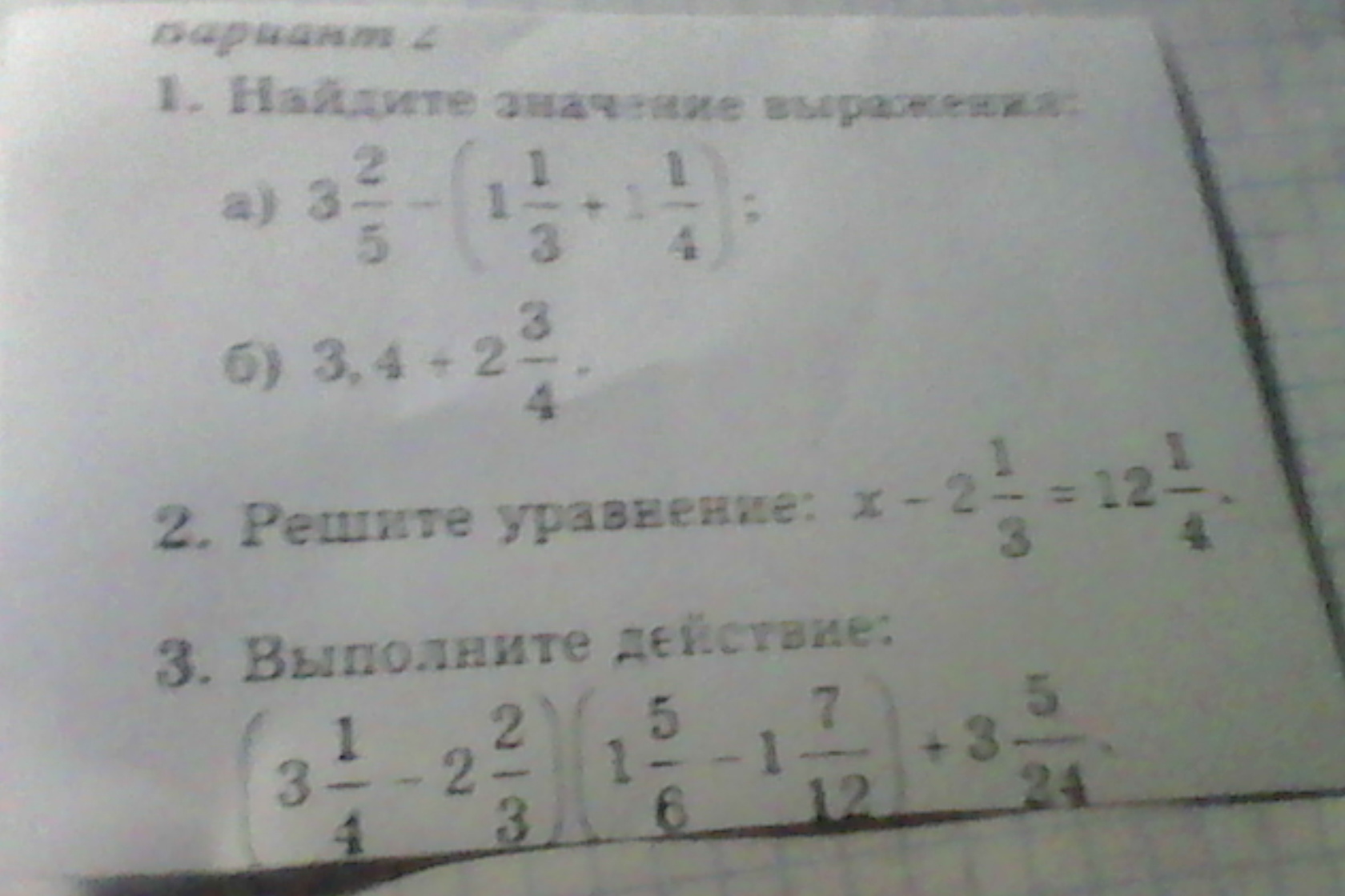 а) 3 2/5 - (1 1/3 + 1 1/4)