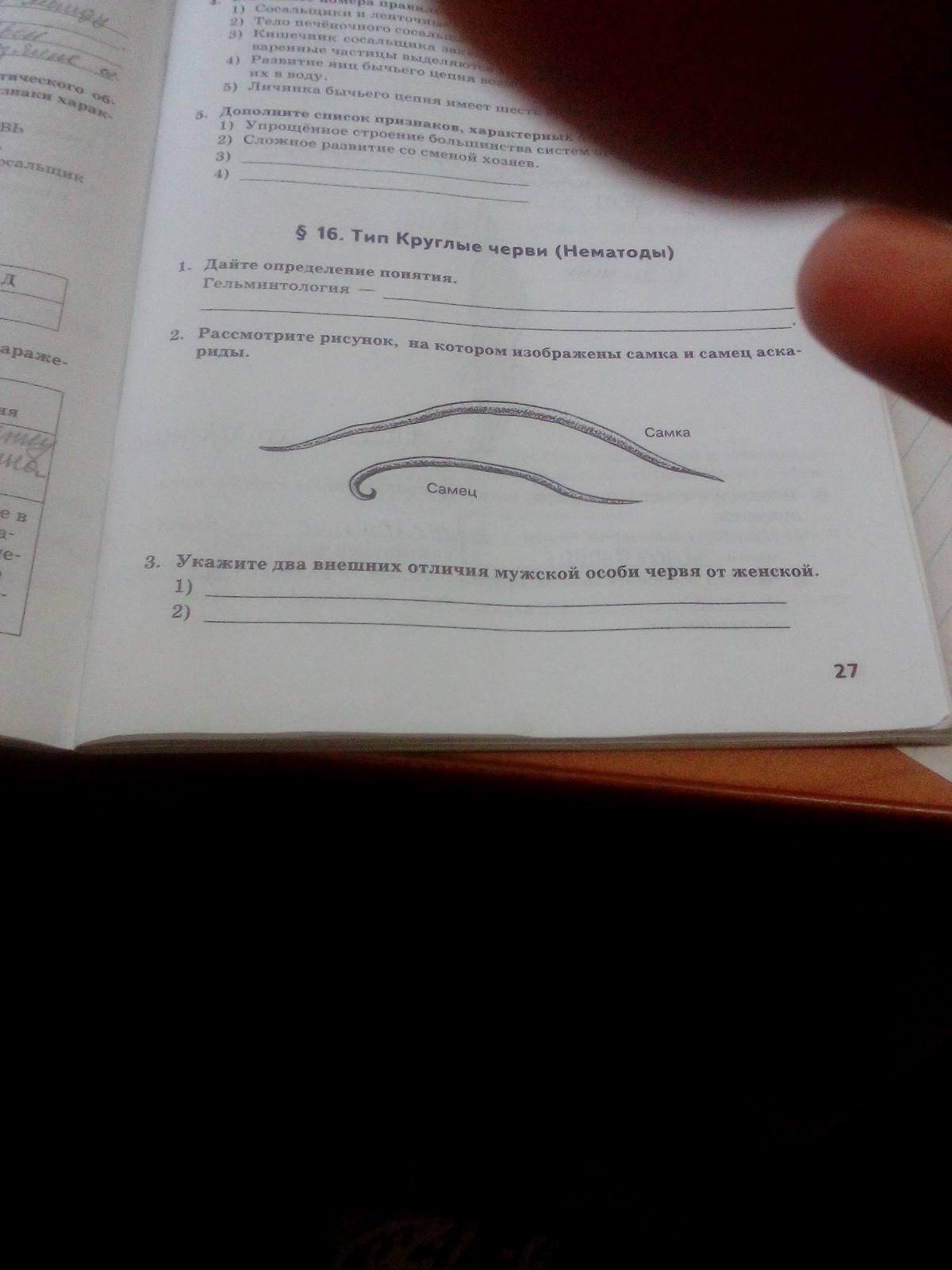 Помогите пожалуйста ответить на вопрос!! Укажите два внешних отличия мужской особи червя от женской