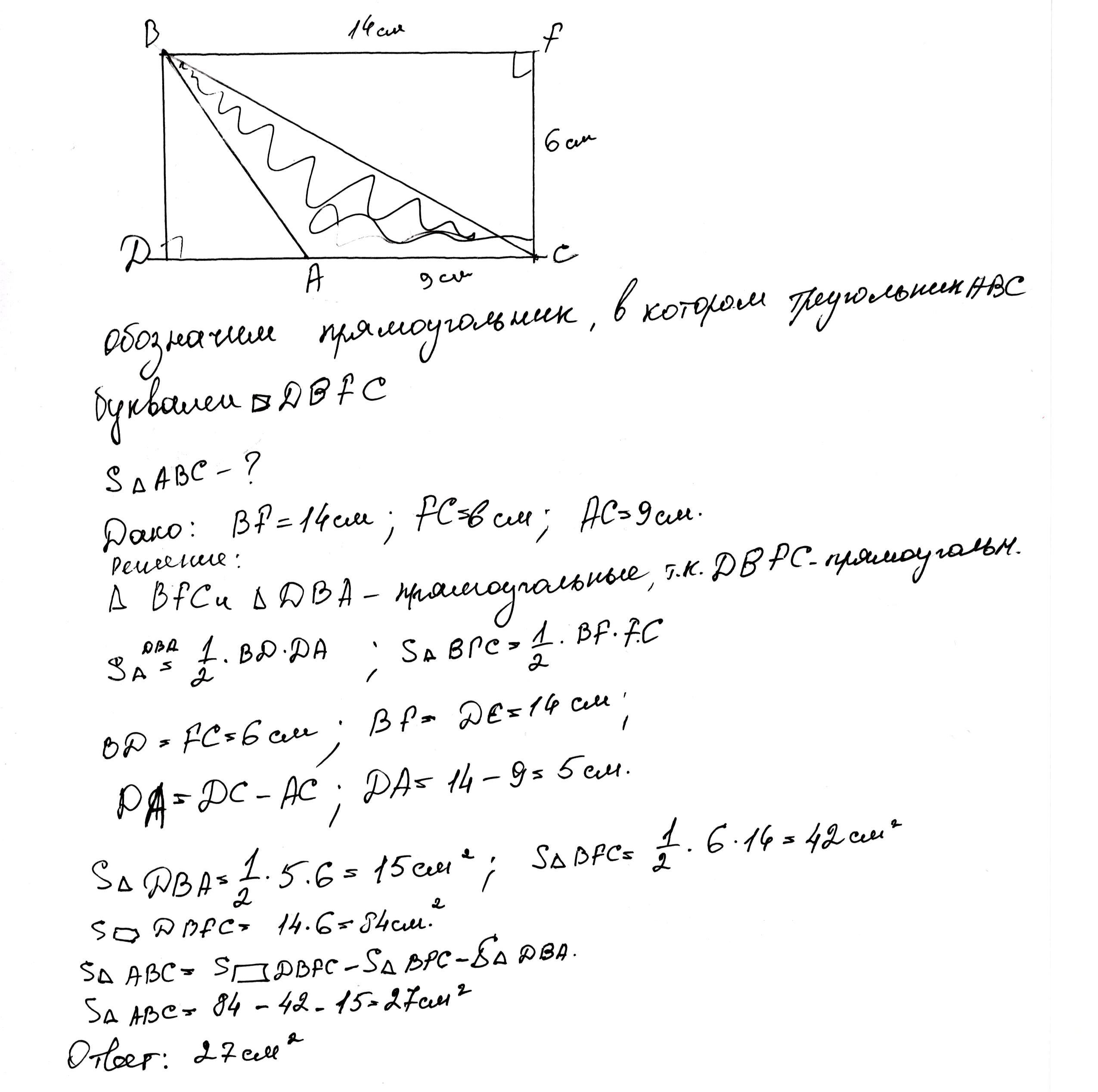 Найдите площадь треугольника АВС,изображенного на рисунке