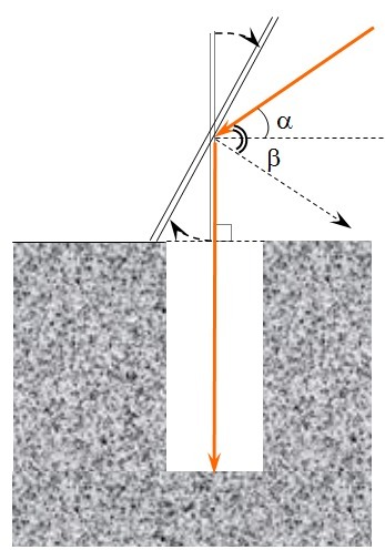 Чтобы отраженный от зеркала луч попал на дно колодца нужно, чтобы отраженный луч шел вертикально вниз, а значит, необходимо, чтобы угол между падающим и отраженным лучами был: