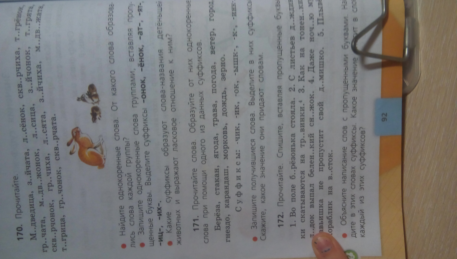 почитайте слова образуйте от них однокоренные слова при помощи одного из данных суффиксов Запишите получившиеся слова выделите в них суффиксы Укажите какое значение Они придают словам