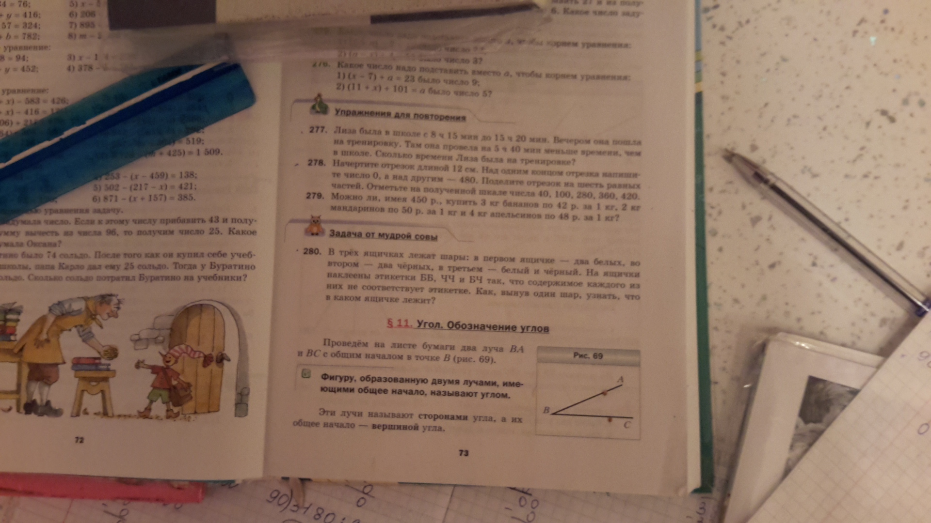 7 ч + 5 м = 7 ч. 5 м.( была в школе. )