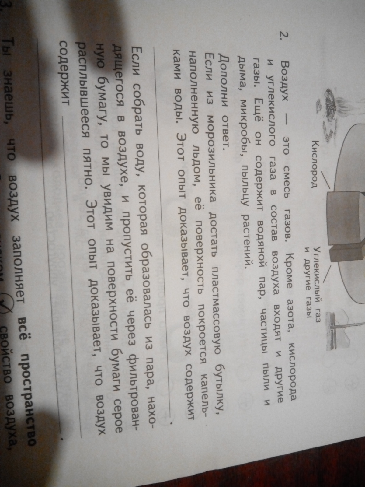 Воздух содержит 1)пыль и 2)водяной пар просто дополни