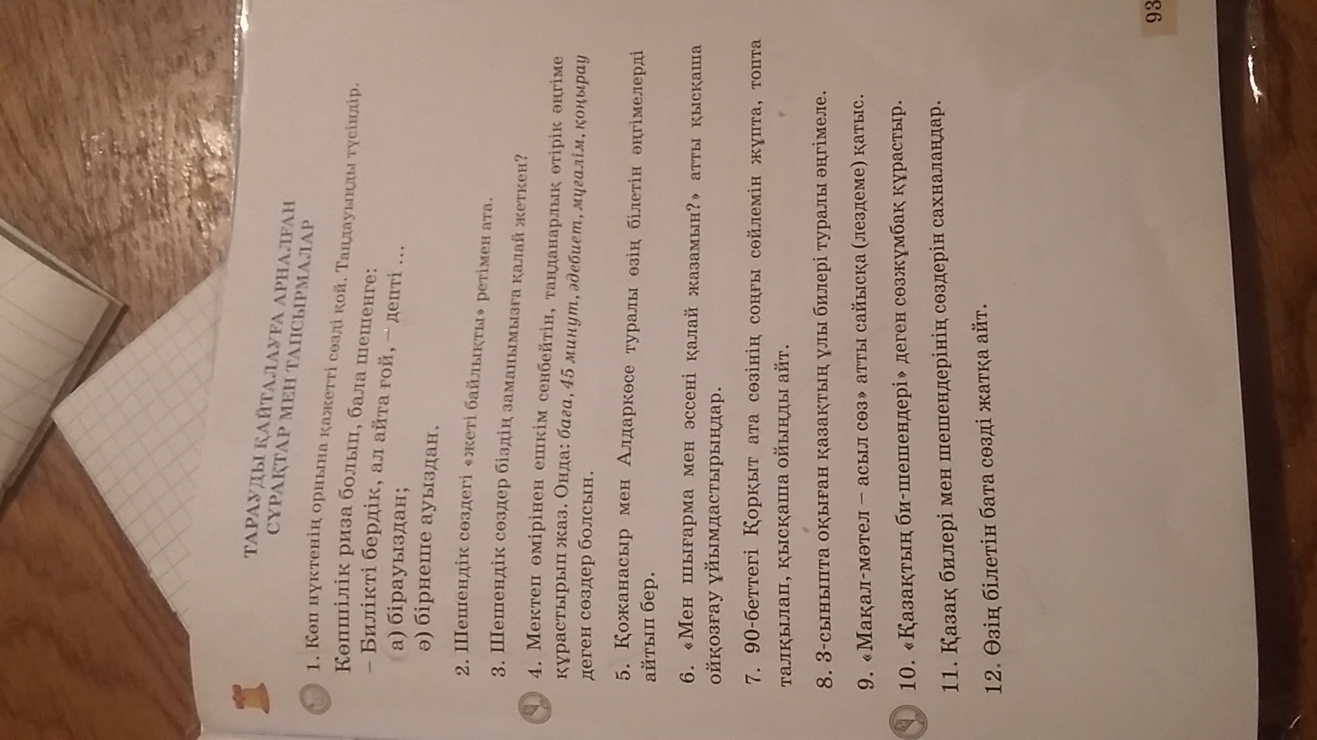 2)ер жігіт,ит,бүркіт,сұду жар,аты осыларды ғана білем