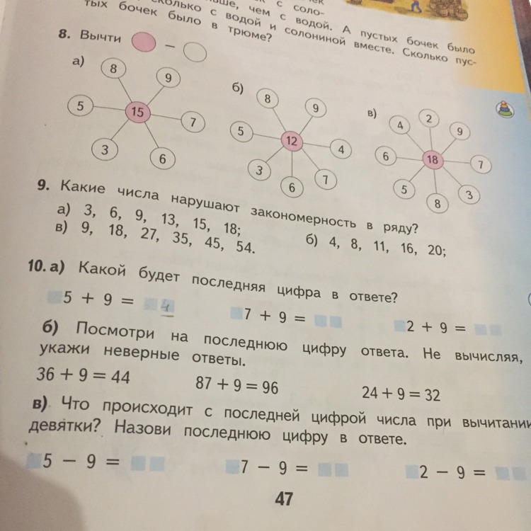 а) 4, 6, 1 б) 44, 32 неверные в) -4, -2, -7