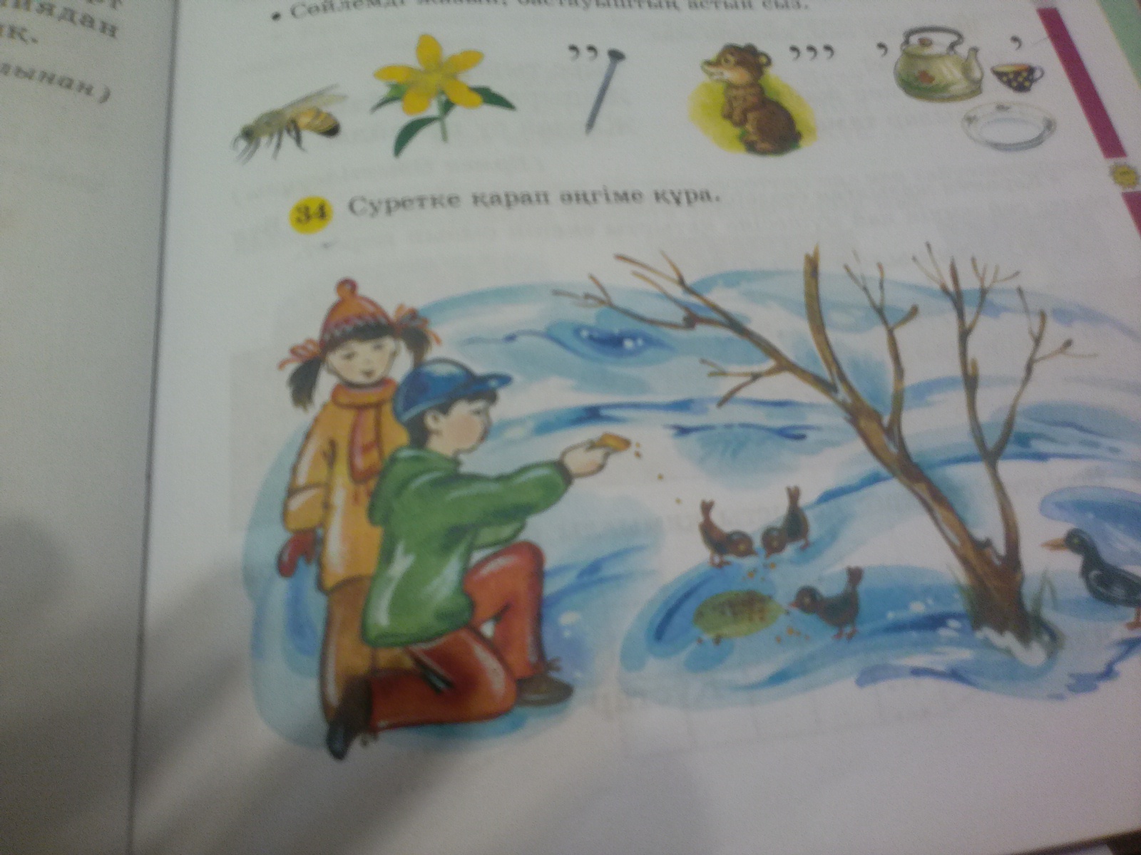 Аружан мен Алишер-достар.Олар қыс мезгілін жақсы кореді.Олар далаға ойнауға шығады да кішкентай кусатрды көріп қалады.Олар уйлерінен тары алып келіп,оны кустарға береды.Сосын олар уйлеріне барады.Олардын кундеры жаксы отті