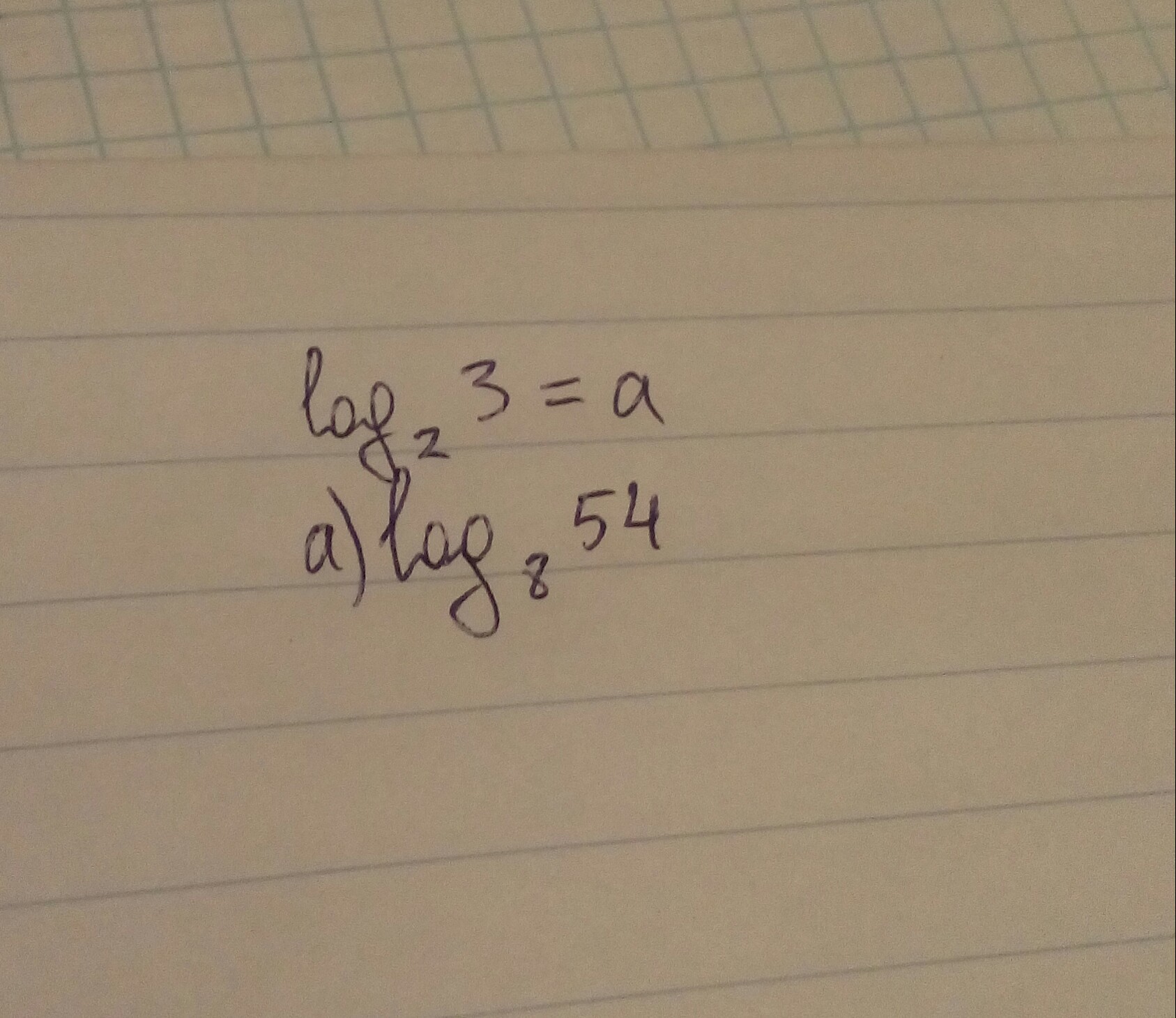 log₈54 = log₂54/log₂8 = log₂(27*2)/3 = (log₂27 + log₂2)/3 = (3log₂3 + 1)/3 =