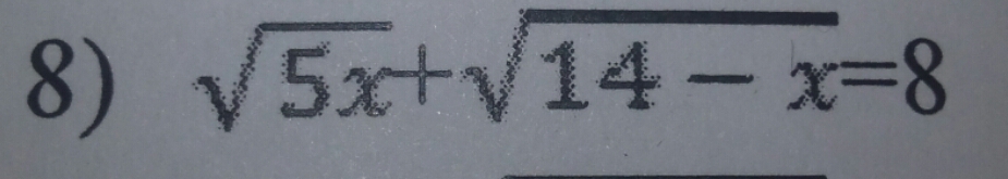 ( V 5x + V ( 14 - x ))^2 = 8^2