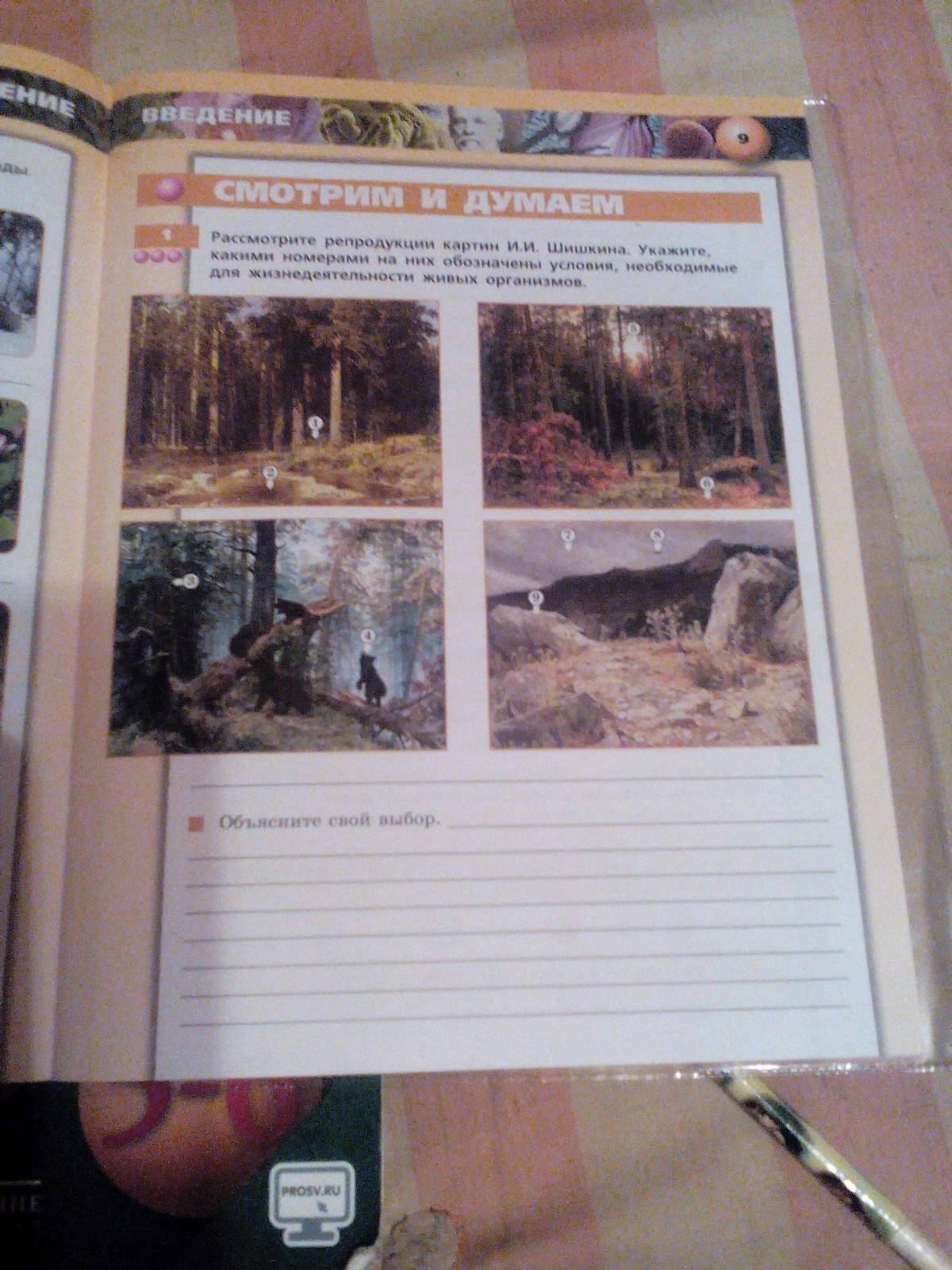 Рассмотрите репродукции картины И. И. Шишкина Укажите какими номерами на них обозначены условия необходимые для жизнедеятельности живых организмов