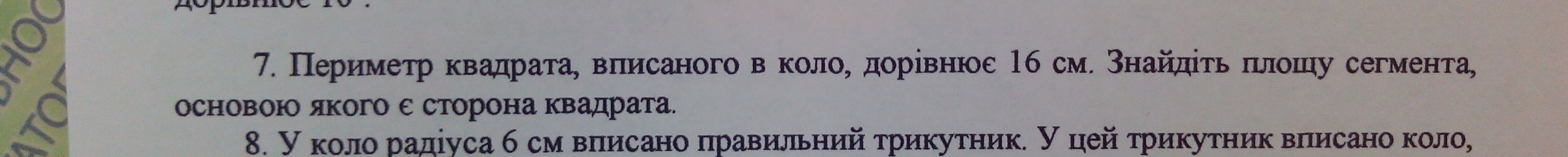 Отсюда Sсегм = 2π-4 ≈ 2,283185 см².