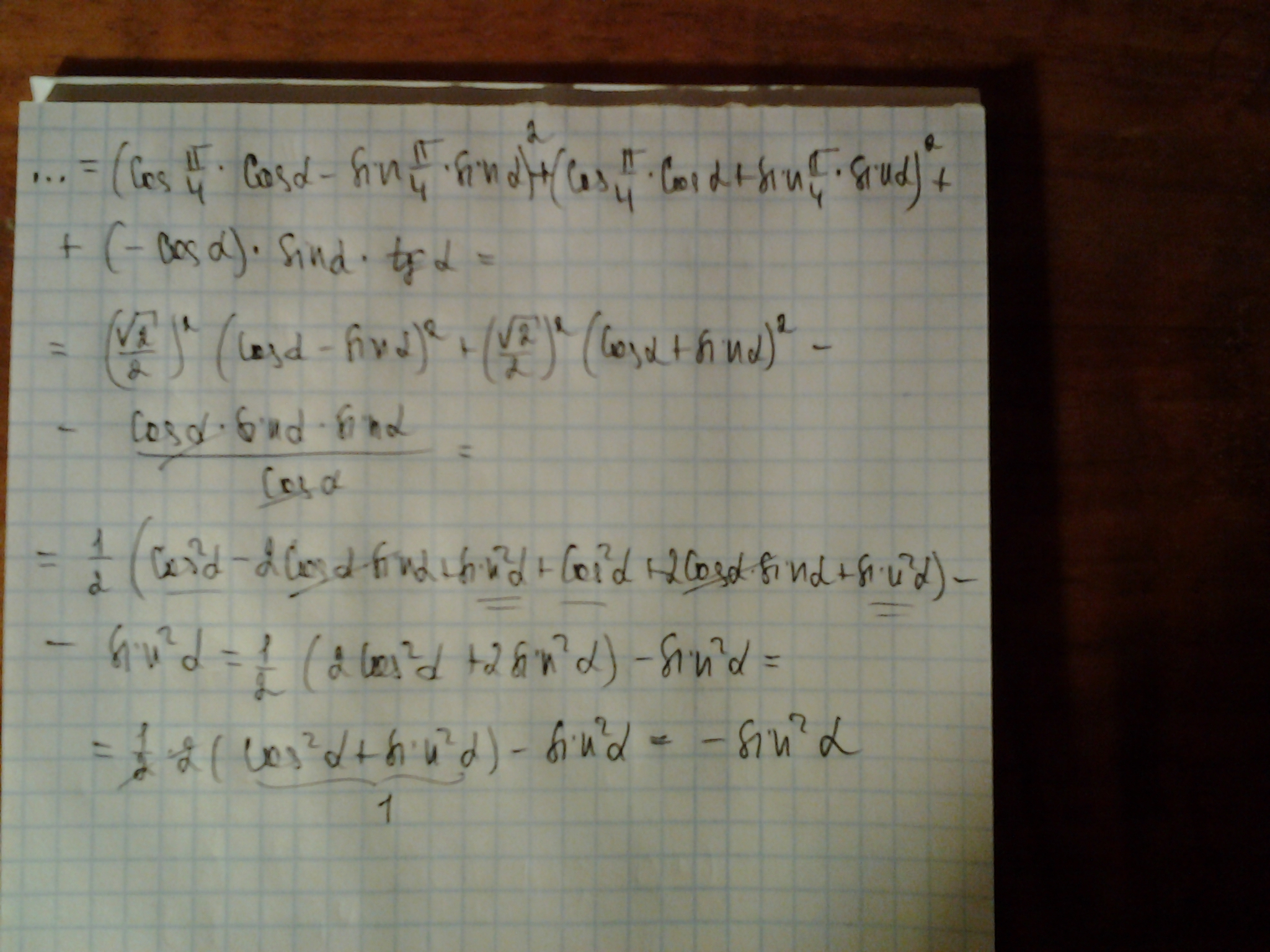 cos^2(pi/4+a)+cos^2(pi/4-a)+sin(3pi/2-a)*cos(3pi/2+a)*tg(pi+a)