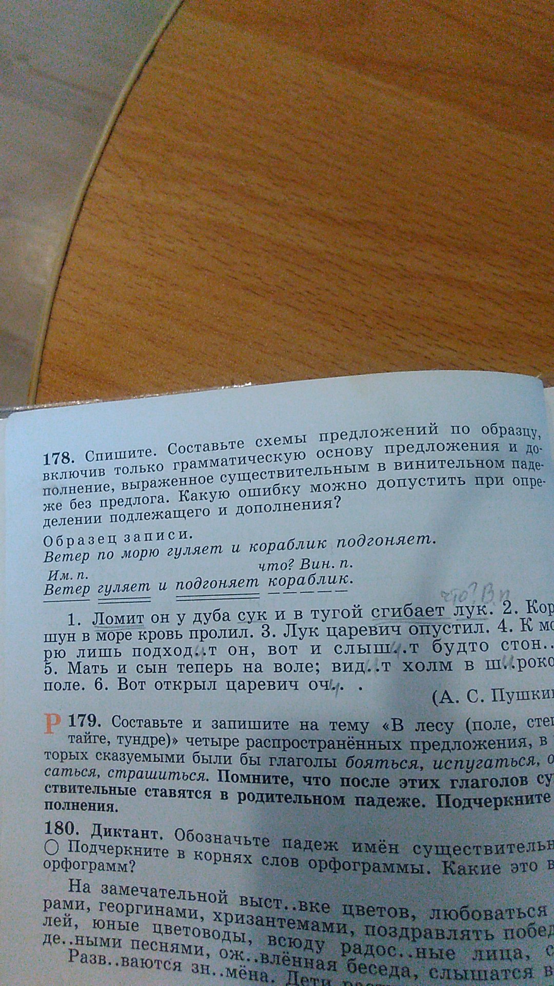 Ломит подчеркиваем 2 чертами .Сук одной.Сук будет И.п. Сгибает -двумя Лук одной(Лук В.п)