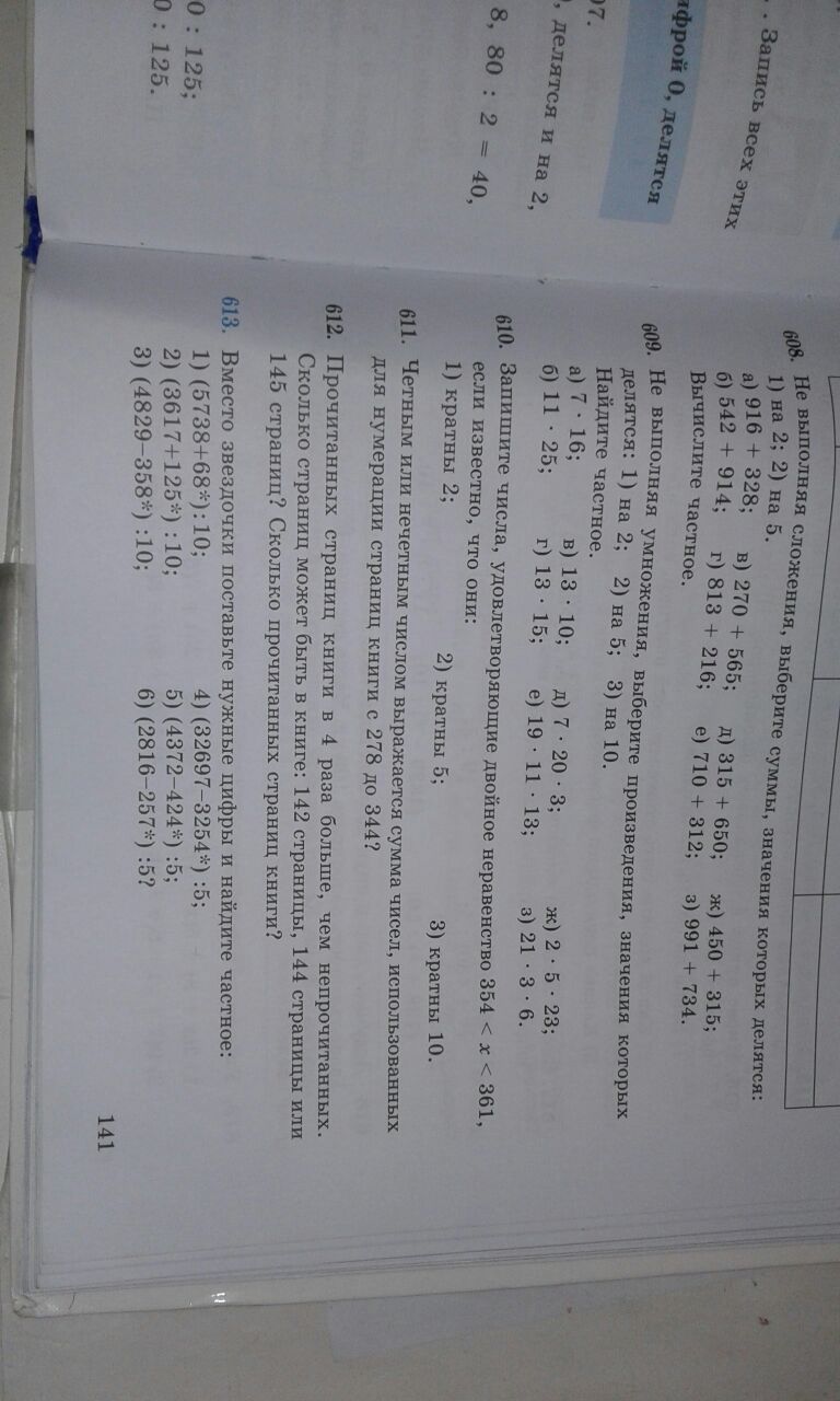 612. Пусть х - количество непрочитанных страниц, тогда 4х - количество прочитанных. Тогда 5х - количество страниц в книге.