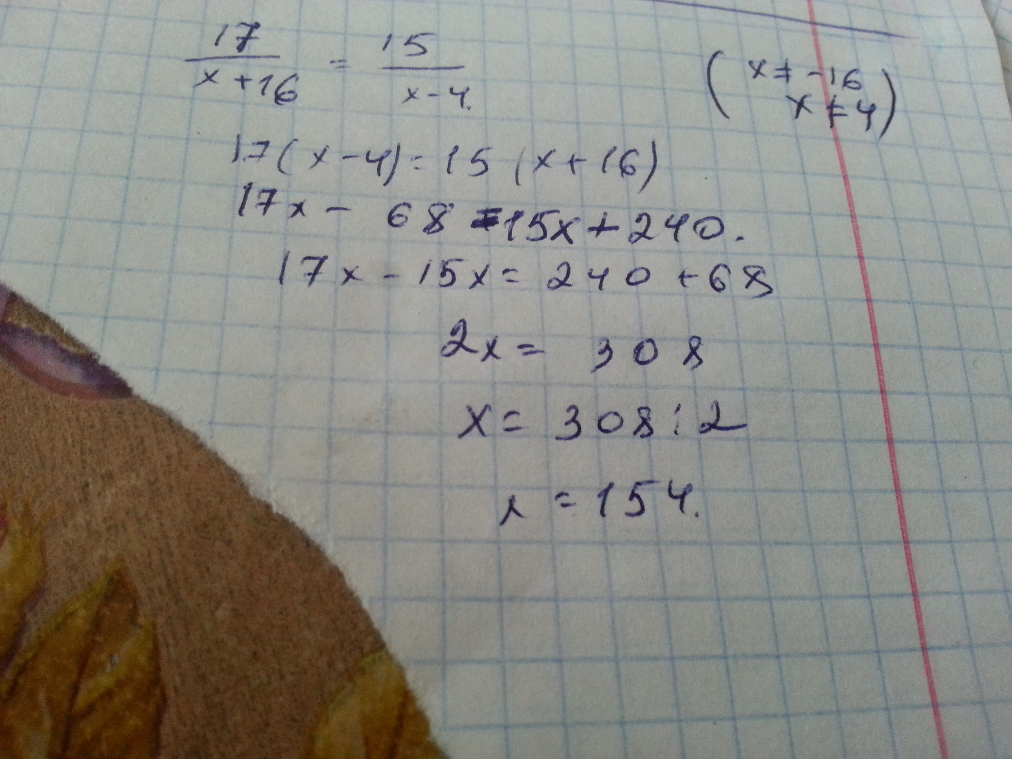 17/х+16=15/х-14 |•(х+16)(х-14)