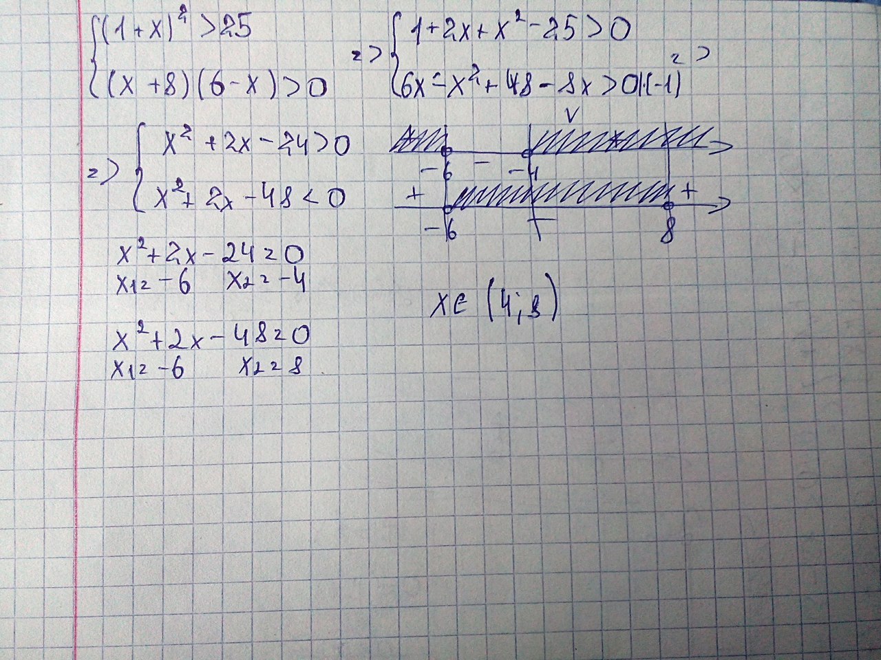 вот решение системы квадратных неравенств