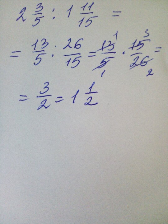 2 3/5 : 1 11/15 = 1 целая 1/2