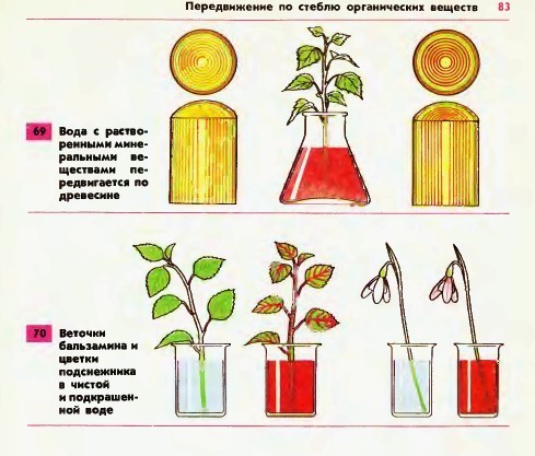 Каким опытом можно доказать , что вода с минеральными веществами передвигается по сосудам древесины?