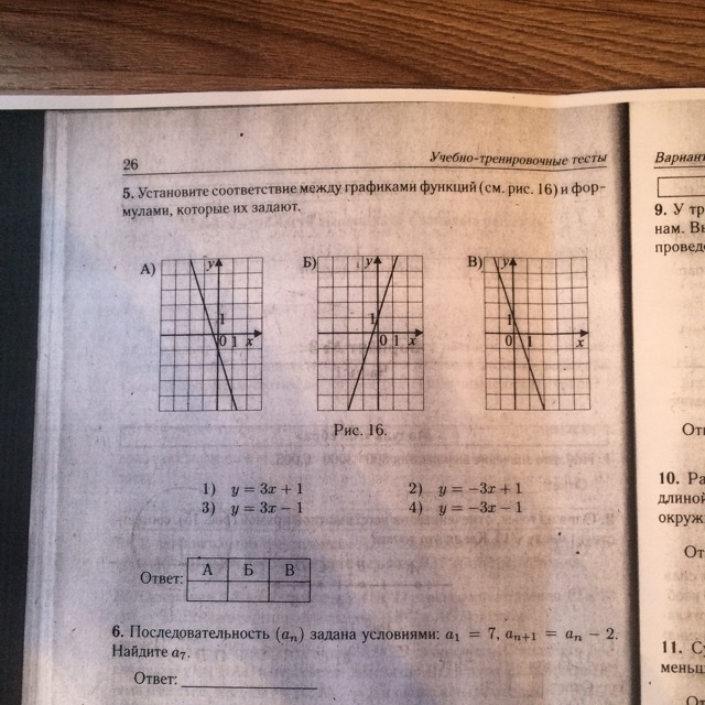 y=3x-1 - прямая, возрастающая (k>0), проходит через y=-1. Такого графика нет.