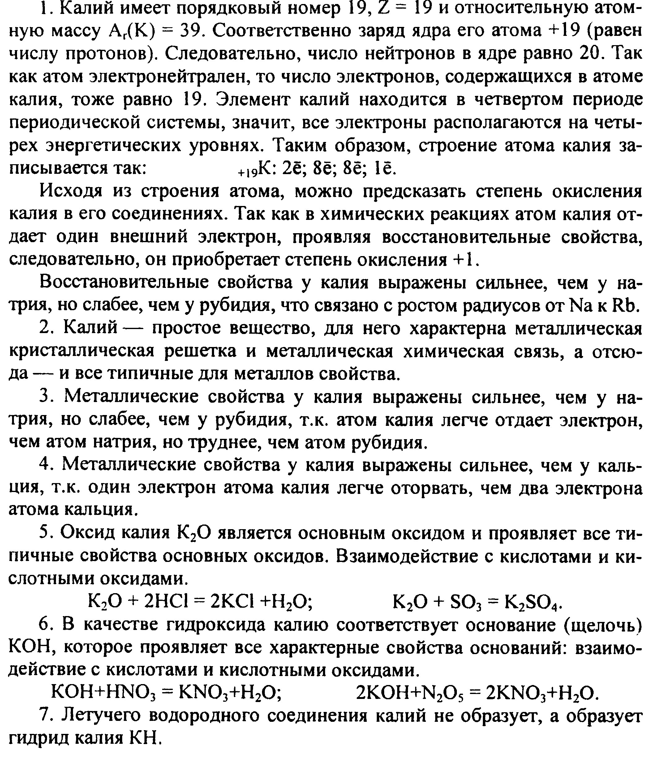 Семь пунктов харктеристики Калия описаны на прикрепленной фотографии.