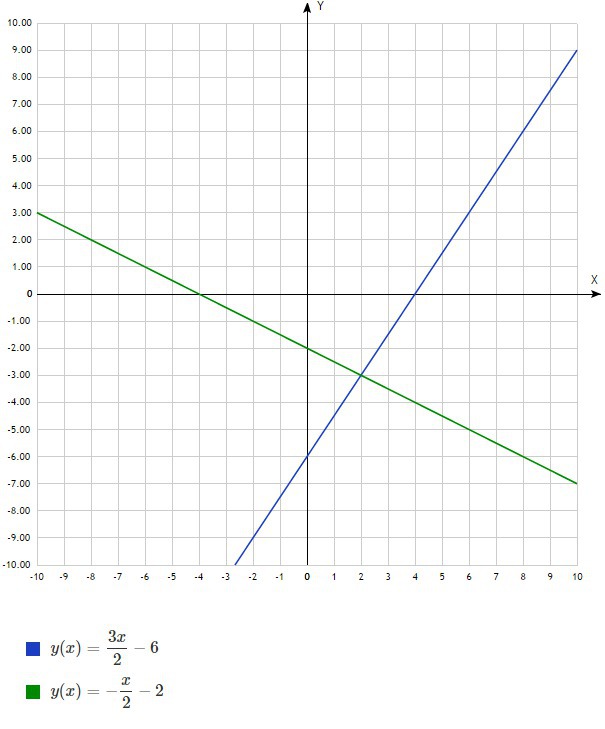 Точка пересечения этих прямых имеет координаты (2;-3). Это и есть решение системы.