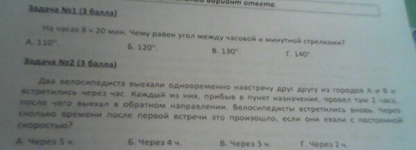 Задача №1 180 - (180 / 6) * 2 = 180 - 60 = 120 градусов (ответ Б)