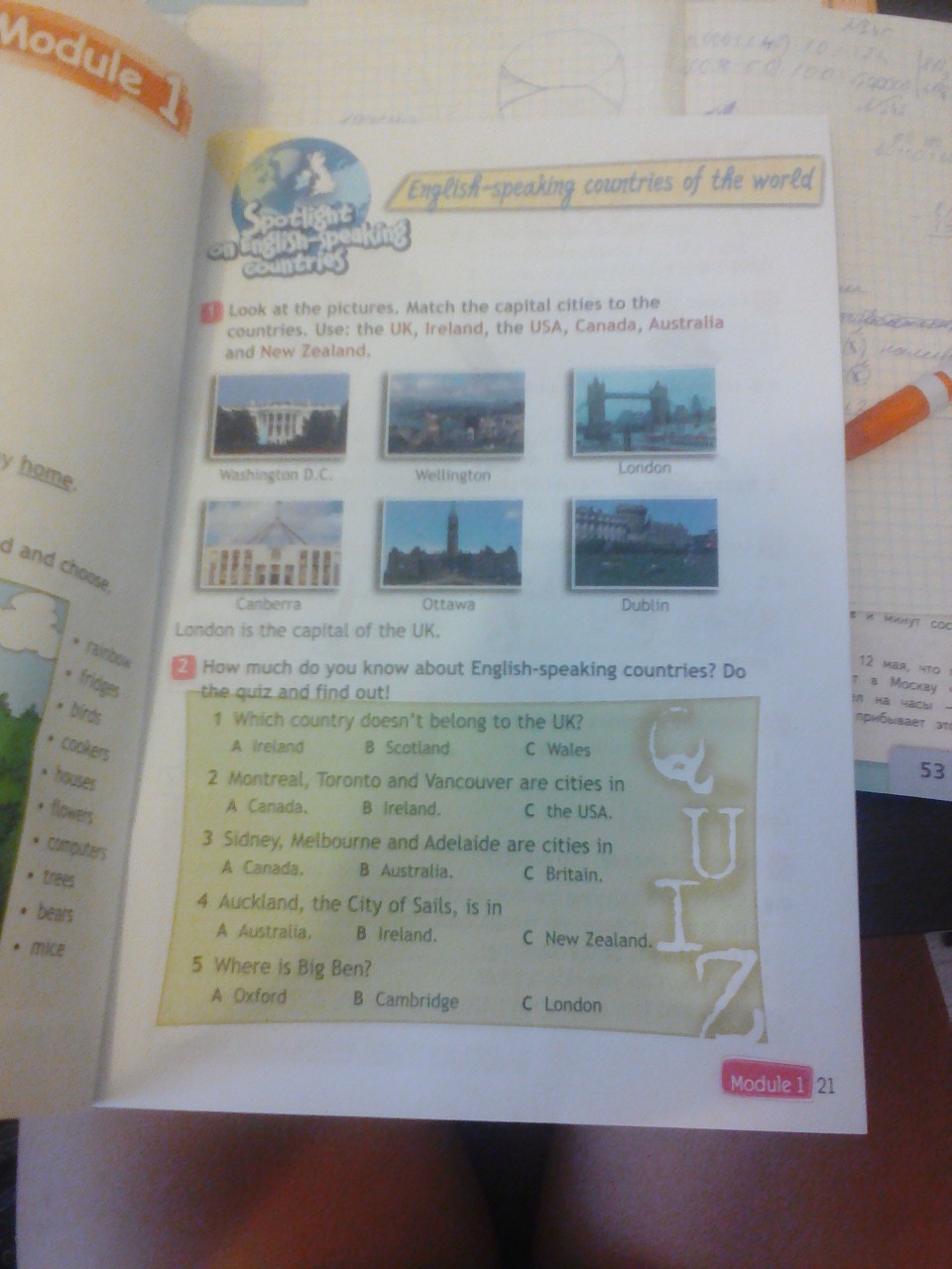1. A. Ireland: 2. A Canada 3. B Australia 4. C New Zealand 5. C London