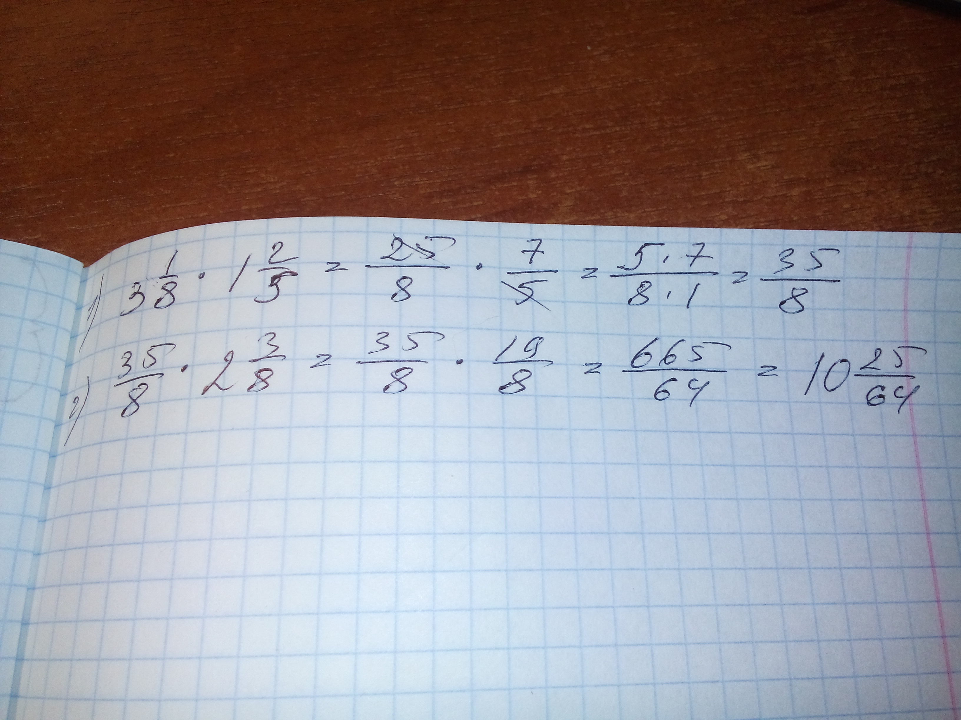 3 1/8 * 1 2/5 * 2 3/8 = 25/8 * 7/5 * 19/8 = 10 25/64дм³
