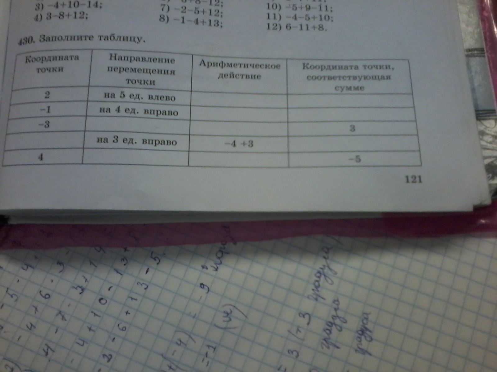 Арифм. действие 2 строчки: -1+4, Коор. точки соот. сумме: 3