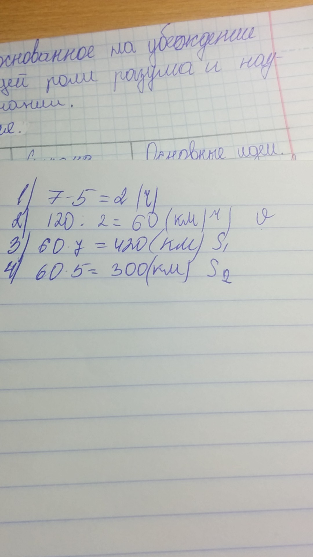 1) 120 : ( 7 - 5 ) = 60 ( км/час ) скорость
