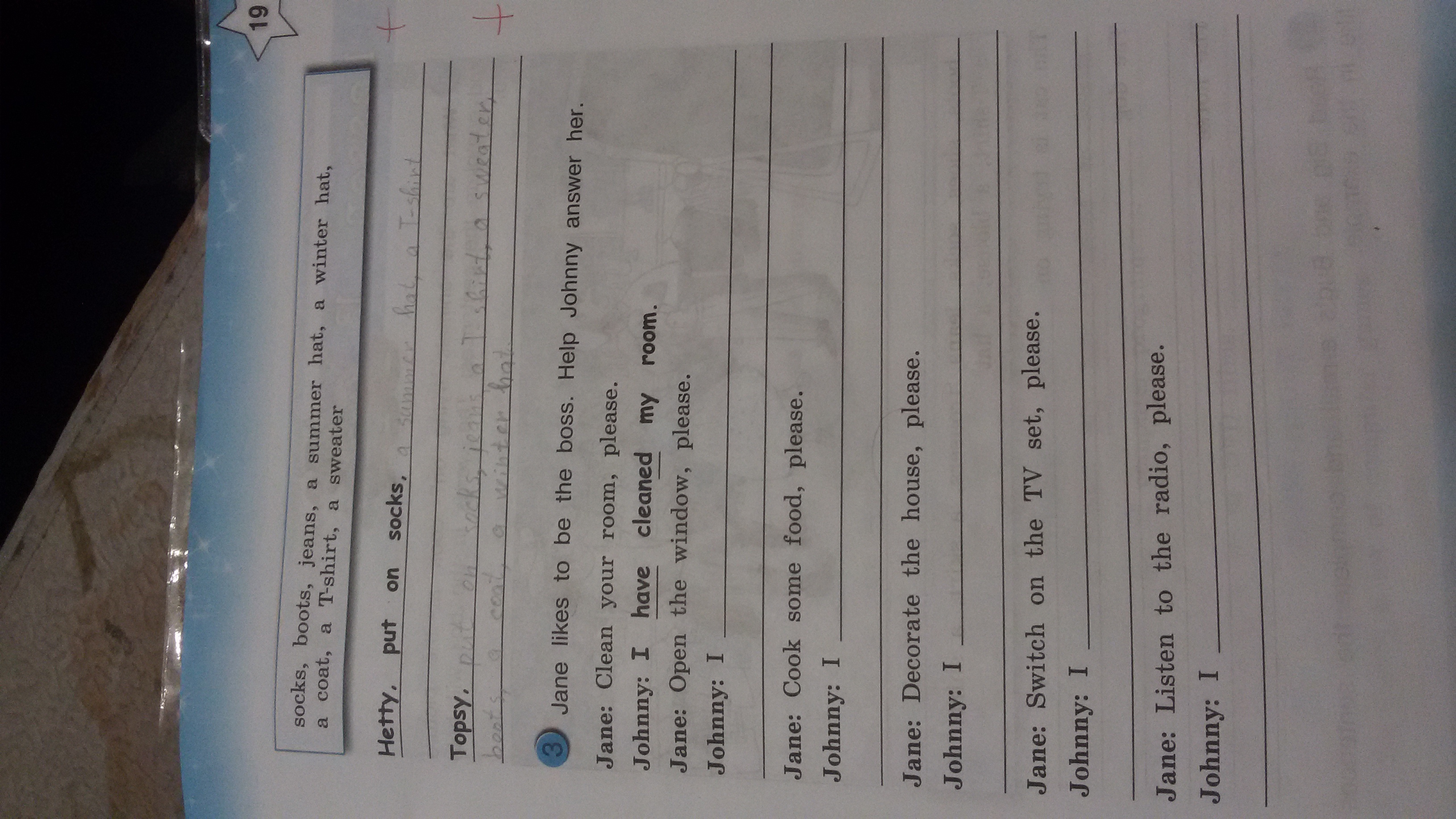 Johnny:I have switch on the TV set.