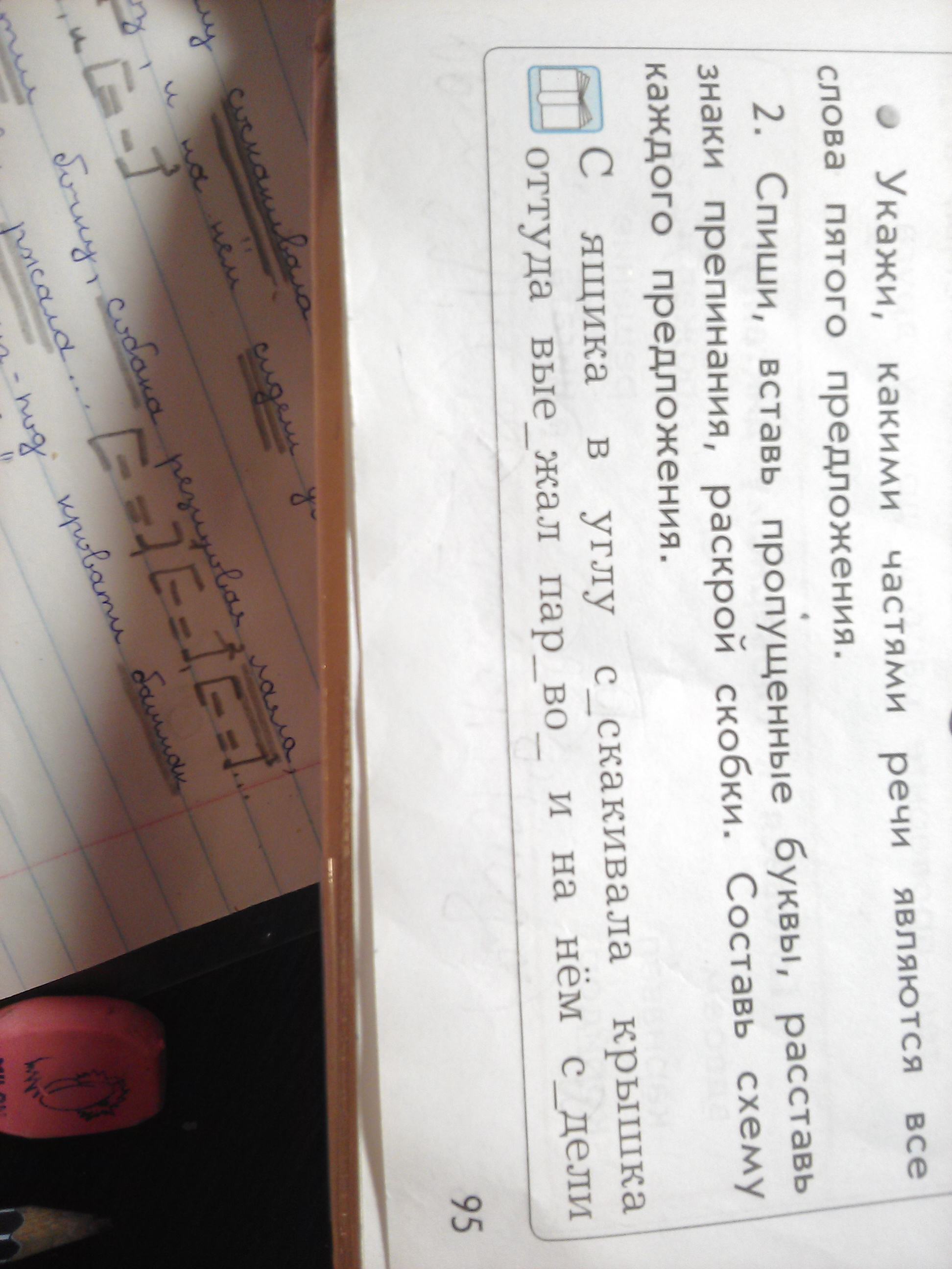 Помогите разобрать предложение : С ящика в углу соскакивала крышка оттуда выезжал паровоз и на нем сидели две куклы .