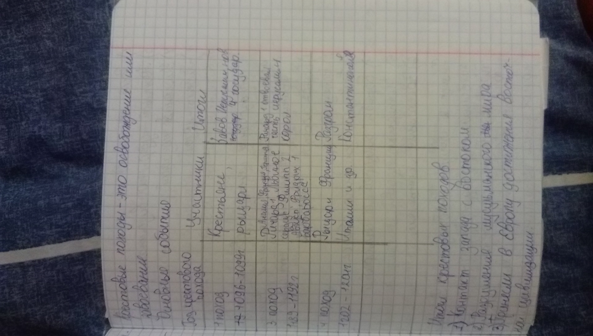 помогите написать таблицу! "крестовые походы" 1,3,4 крестовый поход: годы,участники, цели, результаты.