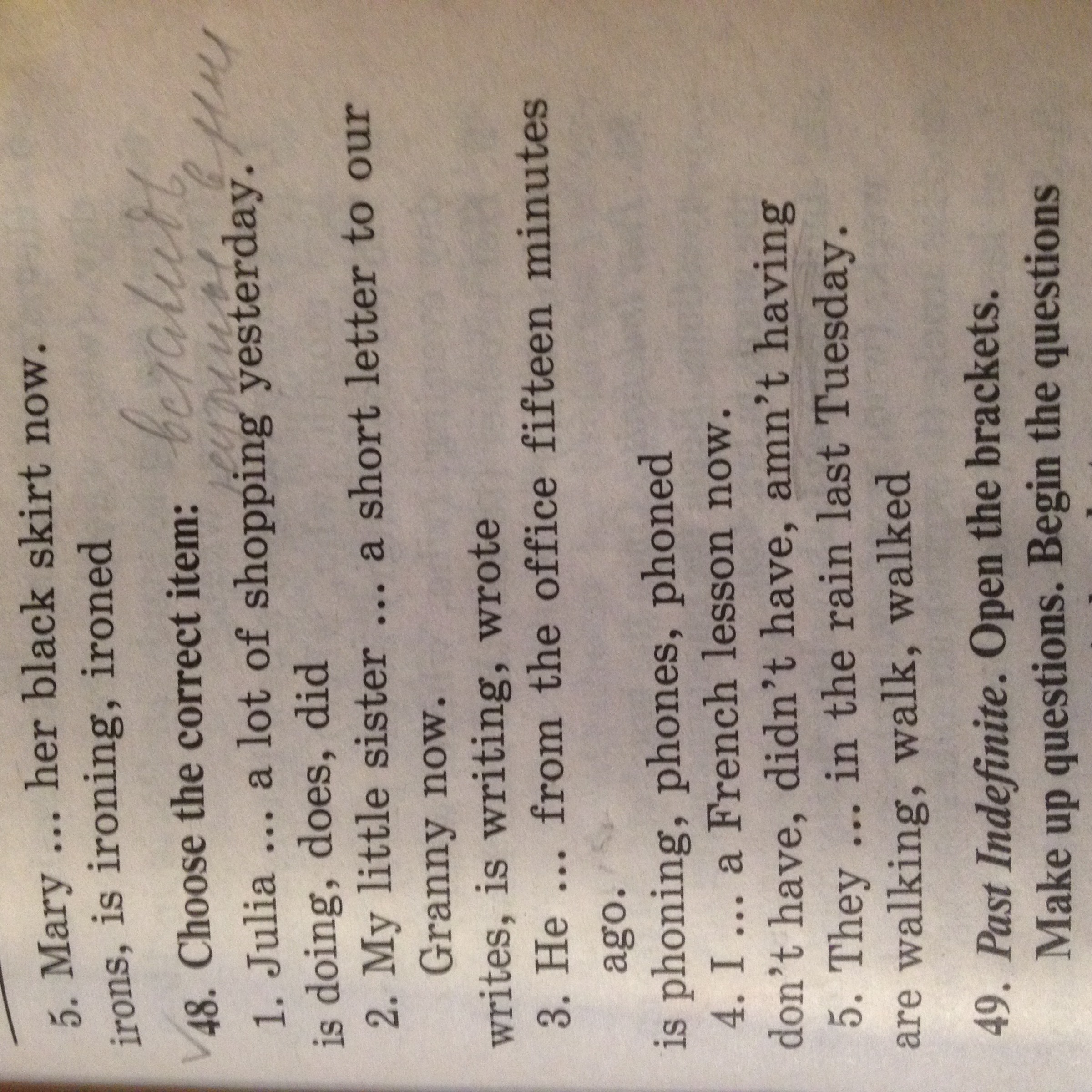 did not go. watched.went.helped.had.wrote.went.did not go