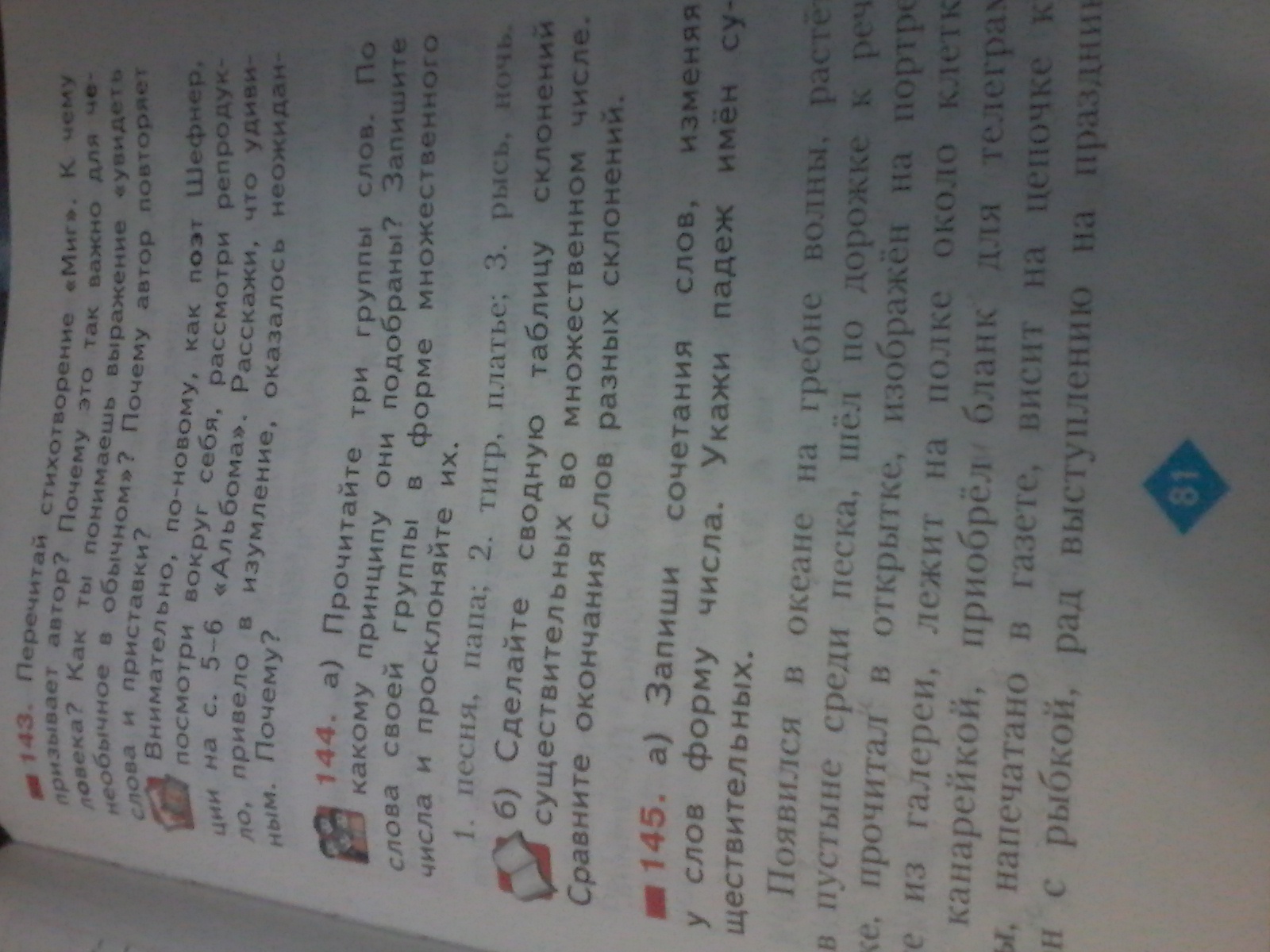 1. Песни, папы. 2. Тигры, платья. 3. Рыси, ночи.