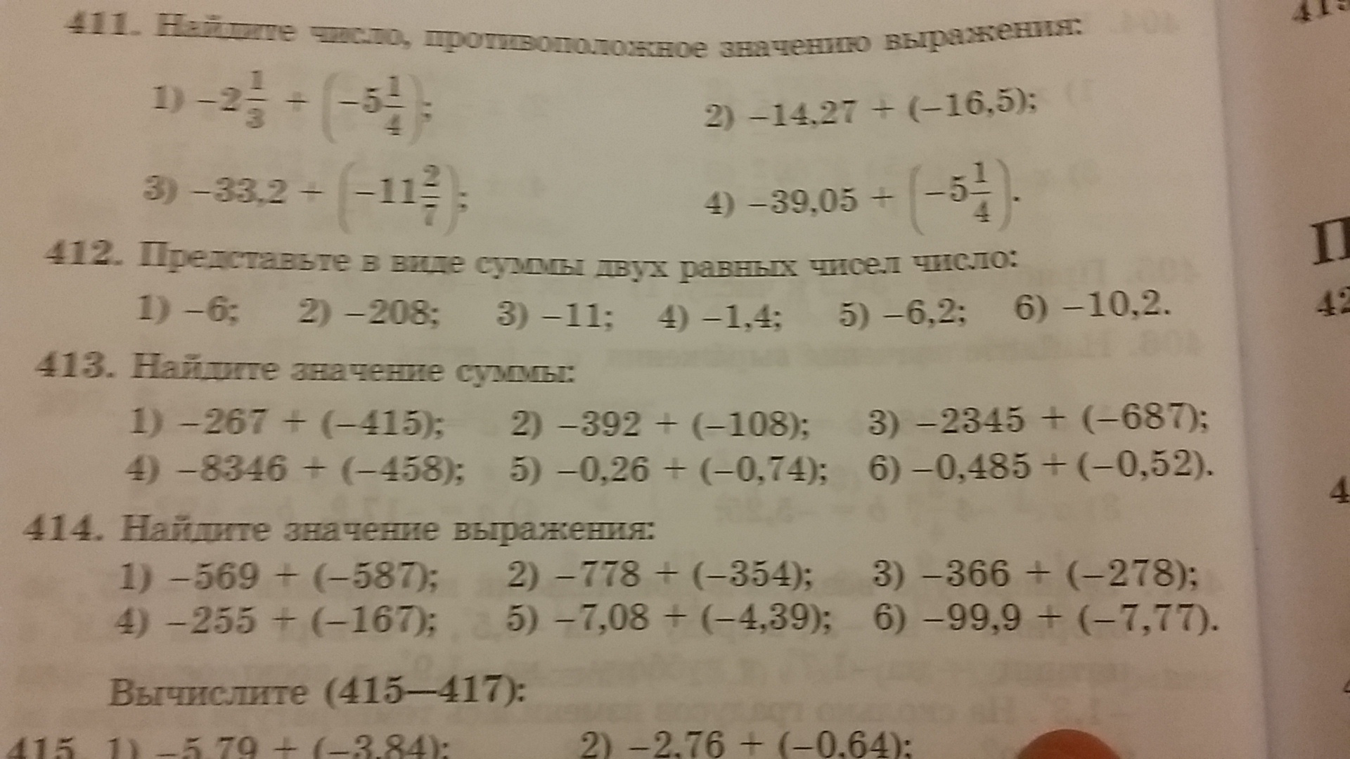 Делишь число на 2 и потом пишешь в виде суммы двух равных отрицательных чисел