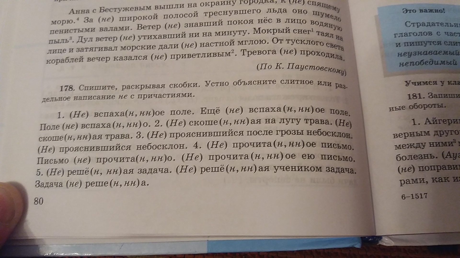 Не вспаханное поле,ещё не вспаханное поле,поле не вспахано,не скошенная трава,не скошенная трава,не прояснившийся 2 раза,непрочитанное письмо,не прочитано,непрочитанное,нерешённая задача,не решёная учеником задача,не решена.
