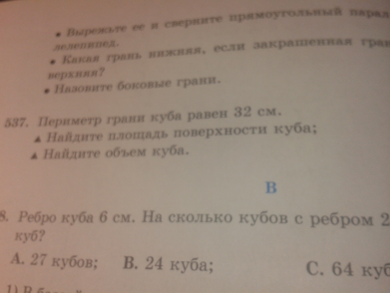 Соответственно S поверхности = 6*(ребро^2) = 6*