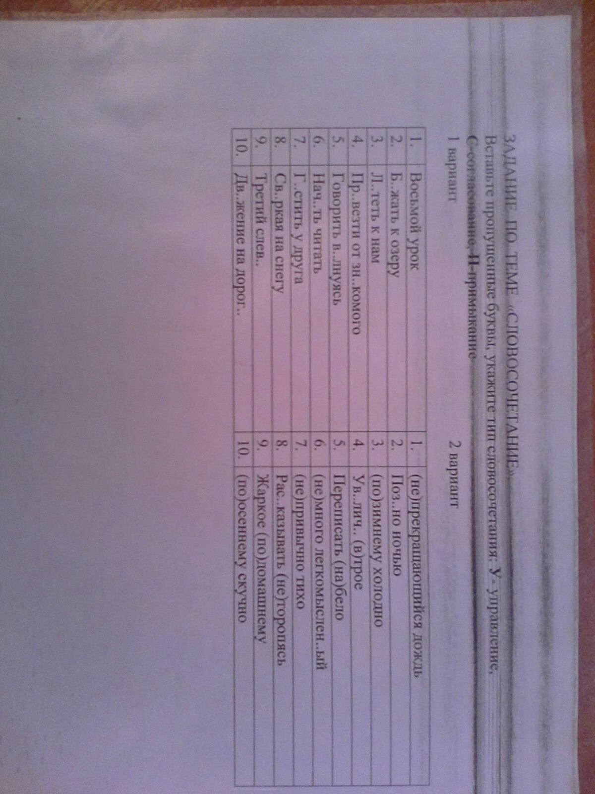 Вставьте пропущенные буквы, укажите тип словосочетания: Управление, согласование,Примыкание