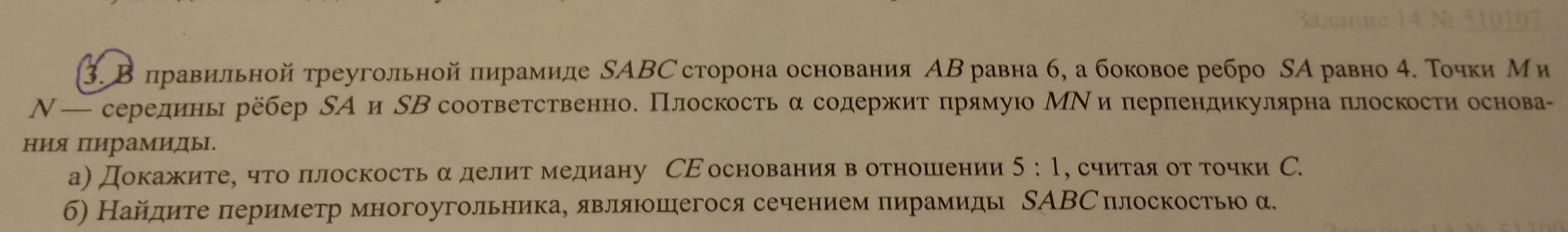 Так как пирамида правильная, то треугольник в основании ABC равносторонний, ⇒ AB=BC=CA=4. И боковые ребра тоже равны: SA=SB=SC.