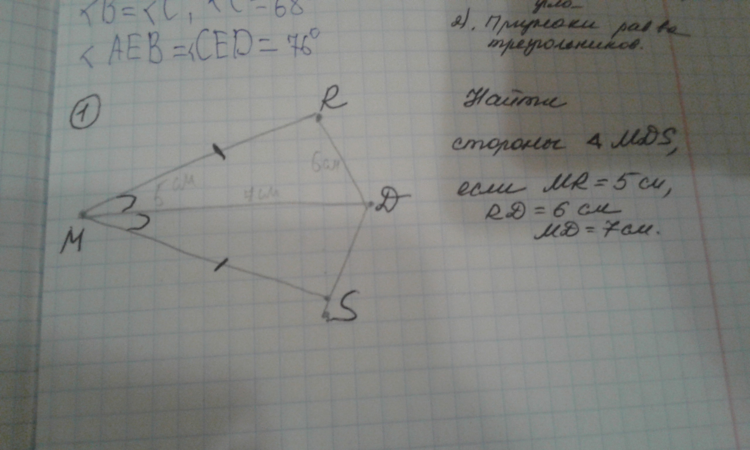 так . как MR=MS и MD общий то RD =SD,MD=7см , SD=6см