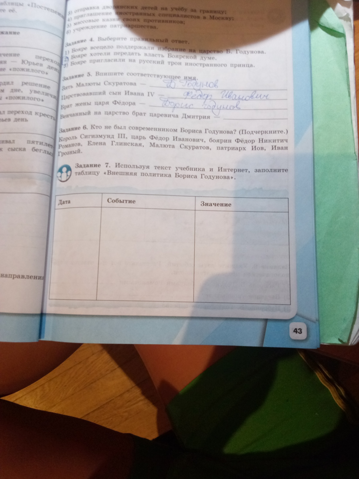 .....Используя текст учебника и интернет Заполните таблицу внешняя политика Бориса Годунова....