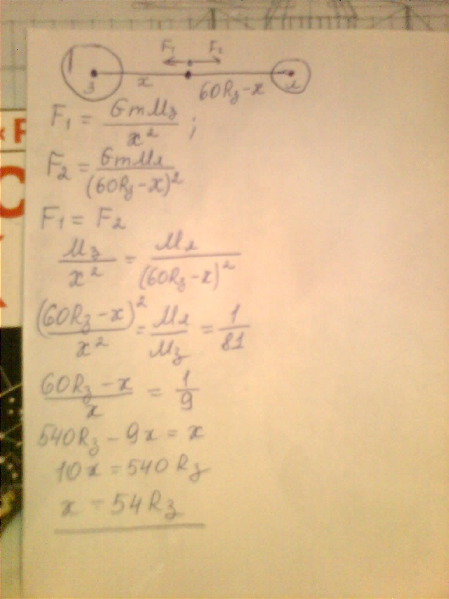 Указать расположение общего центра масс Земли и Луны, приняв радиус Земли 6370 км, массу Луны равной 1/81 земной массы и расстояние между телами — 60 земным радиусам.