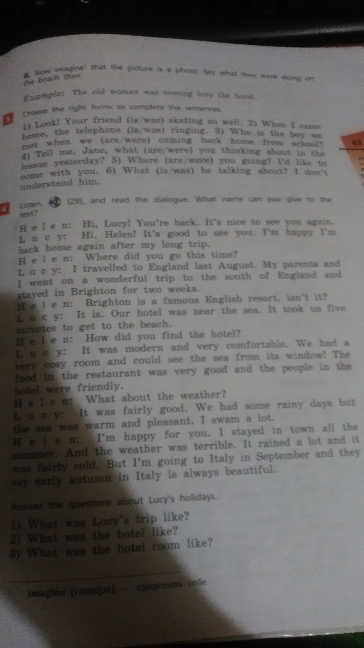 тветьте на вопросы о праздниках Люси. 1) Какова была поездка Люси? 2) Какой отель? 3) Какой номер в отеле? 4) Какой была пища в отеле ? 5) Какие были люди в гостинице?6) Какой была погода? 7) какое было море? 8) Какие праздники Люси понравились? 9) Какое было лето Хеллен?