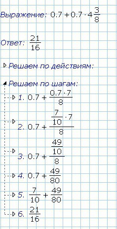 А=7/10+7/10*4 3/8=7/10+7/10*35/8=7/10+49/16=7/10+3 1/16=56/80+3 5/80=
